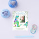 Fügen Sie ein Foto Ihrer kleinen wilden und alle Ihre Party-Details, um eine rauschende T-Rex und niedlichen stegosaurus blau personalisierten prähistorischen Dschungel 1. Geburtstag Einladung. Alle Dinosaurier-Arten sind willkommen. Prähistorische jurassische Ära Dinosaurier-Illustrationen, Original-Kunstwerk von Catherine Sweetman