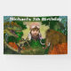 Ein lustiges Design großer Palmen und zwei T-Rex-Dinosaurier, die sich gegen einen riesigen Mammut-Elefanten in einem Dschungel mit hohen Palmen und langen Pflanze mit Laubblättern und zauberhaften, feinen Staub-Glitzern ausrichten, bilden einen Rahmen um das Foto Ihres Kinder. Eine weiße Vorlage mit einem Imitat-Schlagschatten kann personalisiert sein, um Ihre Anforderungen an den Anzug zu erfüllen. Ideal für jeden, der eine Dinosaurier Geburtstagsparty veranstaltet.