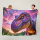 Diese Vlies-Decke hat einen Dinosaurier darauf.