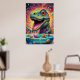 Whimsikaler und lebendiger Dinosaurier, der eine Mischung aus Fantasie und prähistorischem Charme zu sein scheint. Der Dinosaurier hat einen langen Hals und einen großen Kopf, mit einem mit Augen Ausdruck mit fesselnden, übergroßen Augen, die ihm einen niedlichen und merkwürdigen Look verleihen. Ihre Haut ist mit farbenfrohen, wirbelnden Formen und Punkten verziert, fast so, als ob ihr Körper mit einem Kaleidoskop von Texturen in Blues, Grüntöne, Gelb und Purpur gemalt wird. Der lebendige Hintergrund mit seinem schwindelerregenden Himmel und den abstrakten Planeten vermittelt den Eindruck einer anderen Weltlandschaft, was darauf hindeutet, dass der Dinosaurier in einer surrealen, fantastischen Welt liegt. Die hellen, übertönten Farben und die spielerischen Merkmale verleihen der Kreatur einen freundlichen, animierten Charakter, ideal für einen magischen oder traumhaften Rahmen. Dieser Dinosaurier könnte zu einer imaginierten Spezies aus einem kosmischen Bereich gehören, wo Flora und Fauna in lebendigen, psychedelischen Ökosystemen gedeihen und prähistorisches Leben mit einer Drehung im Weltraumzeitalter verbinden. Sein Benehmen verströmt Unschuld und Staunen, als ob es sein fantastisches Universum zum ersten Mal erforscht.