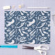 Blaue und weiße Dinosaurierknochen, die Muster wiederholen! Die Dinosaurier, die in diesem Entwurf gekennzeichnet werden, schließen ein: Tyrannosaurus Rex, Allosaurus, Parasaurolophus, Triceratops, Brachiosaurus, Spinosaurus und Velociraptor.