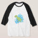 Eine niedliche Abbildung eines grünen Tyrannosaurus Rex Dinosauriers mit blauen Farbspritzen im Hintergrund. Ideal für Geburtstagsgeschenke, Kinderzimmer-Dekoration, Kinderspielkunst, Wohngestaltung, zurück zur Schule oder zu jedem anderen besondere Anlass.