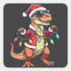 Dinosaurier mit Weihnachtslicht-Weihnachtsmannmütz Quadratischer Aufkleber