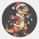 Dinosaurier mit Weihnachtslicht-Weihnachtsmannmütz Runder Aufkleber