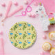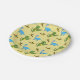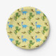 Gelbe Teller mit blauen Dinosauriern, grünen Dinosauriern und braunen Pterodaktylen auf gelbem Hintergrund. Die Hintergrundfarbe von Tellern kann individuell angepasst werden. Diese passen hervorragend zu unseren passenden Papiertassen und Party-Hüten.