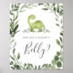 Lassen Sie Ihre Gäste mit unseren Dinosauriern raten, wie groß das Bauch-Game-Schild der Mama ist. Freuen Sie sich auf die Aquarellgarage mit Eukalyptusgarten und den eleganten handgeschriebenen Schriftart.