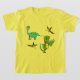T-Rex, ein blauer Dinosaurier und fröhlicher Pterodactylus umringt diesen farbenfrohen Jungs-T - Shirt.