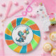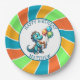 Adorable Personalisiert Boys Geburtstagsparty Teller. Niedliches Dinosaurier-Thema in Blau, Orange und Grün. Niedliche Cartoon-Dinosaurier mit Ballons und Geburtstagskuchen. Geben Sie Name und Alter in den personalisierenden Bereich ein.