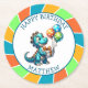 Adorable Personalisiert Boys Geburtstagsparty Untersetzer. Niedliches Dinosaurier-Thema in Blau, Orange und Grün. Niedliche Cartoon-Dinosaurier mit Ballons und Geburtstagskuchen. Geben Sie Name und Alter in den personalisierenden Bereich ein.