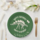 Geburtstagsparty Dinosaurierknochen, Geburtstagspapier-Teller in Grün oder ändern die Hintergrundfarbe zu der Farbe, die Sie bevorzugen. Text kann geändert werden, ein Name oder ein anderer Text hinzugefügt werden! Stegosaurus mit Ballonsammlung.