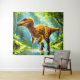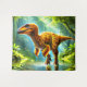 Dieser Wandteppich hat einen Dinosaurier darauf.
