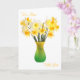 "Für Mama...mit Liebe" - komplett anpassbare Grußkarte mit wunderschönem Daffodil-Bouquet in einer gelb-grünen Vase auf weißem Hintergrund.