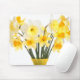 Anpassbare Mauspad mit schönem Daffodil-Bouquet in einer gelb-grünen Vase auf weißem Hintergrund.