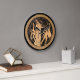 10.75" runde weiße Acrylwandtür mit einem Bild von Dionysus, Gott der Wein- und Weinherstellung, rituellen Wahnsinn, und die Satsyrer auf Schwarz.Die gesamte Toga-Uhr-Sammlung im DÉCOR| Kontrollabschnitt.