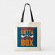 Hockey-Spieler Design Totbeutel mit Gold und rotem Text auf jeder Seite, dass Straight Outta der Penalty Box! Eine Seite hat einen braunen Hintergrund, die andere einen blauen Hintergrund. Auch Silhouette Hockey Sticks und Puck.