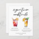 Dieses elegante Cocktails-Menü bietet eine eigene schwarze Typografie über 2 Drinks und deren Zutaten für Ihre Hochzeitsfeier. Ein niedlicher Dirty Shirley Temple und Piña Colada zeichnend fügen einen coolen Flair zu Ihrem Bar Menü hinzu. Füllen Sie bitte die Namen des Paares und das Datum für seinen Empfang aus.