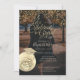 Gold glitter graduation cap, disco ball and confetti on black background.