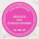 Diskobälle in drei Größen für Ihre Diskothek oder 70er Hochzeit. Die Vorderseite ist eine silberne Diskothek. Die Rückseite ist in Disco-Schriftart personalisiert. Die große Größe beinhaltet Ihre Namen und das Hochzeitstag. Die kleine Größe hat ein Monogramm. Diese Version ist sehr lila. Sie können die Hintergrundfarbe im Designwerkzeug leicht ändern. Hinweis: Dies ist ein silbernes Bild, keine echte Folie.