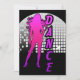Disco Ball Dancer. Text sagt: Tanz. Grafik zeigt eine Dame mit langen Haaren. Wählen Sie Stil, Farbe und Größe. Anpassen: Mit vielen Speicherobjekten können Sie eine Hintergrundfarbe, einen Text oder ein Bild mit einem hochgeladenen Bild ersetzen.