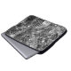 Disco-Ballschmuck verschiedener Größen bilden einen chaotischen Stapel in diesem einzigartigen Schwarz-Weiß-Foto. Die glänzenden Spiegelbälle reflektieren helles Licht oder dunkle Schatten aus jedem ihrer kleinen, spiegelroten Facetten. Die Glitzer-Kugel verziert Erholung auf der Oberfläche von Garland mit reflektierenden silbernen dodecahedron Perlen. Digitales, schwarz-weißes Foto. Copyright © 2013 Claire E. Skinner. Alle Rechte vorbehalten.