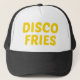 DISCO BRÄT Spaß und mutigen Slogan auf Fernlastfahrerhut, Schwarzes, ironische Typografie, die lustige Aussage, inspiriert durch Fernsehcharakter-Frank rossitano. Fischrogen vollständig, Discotanzen.