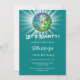Eine mädchenhafte und weibliche 18. (oder jedes Alter) Party Einladung. Eine aquamarine, grüne Hintergrundfarbe. Dekoriert mit einer farbenfrohen Diskothek. Text: Lasst uns Party machen! Personalisieren und fügen Sie einen Namen und Party-Details hinzu. Der Name wird mit einem handgeschriebenen Stilskript geschrieben.