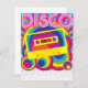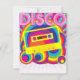 Disco-Party - Retro-Audio-Kassettenband und Disco-Signatur auf mehrfarbigem Hintergrund