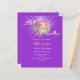 Eine mädchenhafte und weibliche 18. (oder jedes Alter) Party Einladung. Eine lila Lavendelhintergrundfarbe. Dekoriert mit einer farbenfrohen Diskothek. Text: Lasst uns Party machen! Personalisieren und fügen Sie einen Namen und Party-Details hinzu. Der Name wird mit einem handgeschriebenen Stilskript geschrieben. 1 Blatt = 1 Einladung mit Druckkante bis Kante.