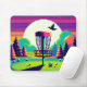 8-Bit Pixelkunst, die ein Button auf der Disc-Golfanlage zwischen den Bäumen in lila, grün, blau und orange darstellt.
