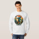 Bigfoot ist legendär. Retro sasquatch wirft Disc Golf mit einem Vintagen Sonnenuntergang und Kiefern hinter ihm.