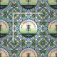 Farbiges Mandala-Design mit Silhouette von Scheibengolfkörben und -ketten, das die Spieler daran erinnert, "Putt Plastic In seinem Platz".