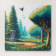 Disc Golf Puzzle mit einem coolen Gaming Video Pixel Art Disc Gold Kurs in Blau und Grün.