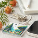 Disc Golf Schlüsselanhänger mit einem coolen Gaming-Video-Video-Player Pixel Art Disc Gold in Blau und Grün.