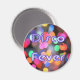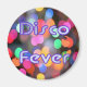 Runder Magnet mit einem Bild von regenbogenfarbenen Disco-Lichtern und den Worten "Disco Fever" in hellen und dunklen lila Schriften. Sehen Sie sich die gesamte Disco 70er Magnet-Sammlung in den SPEZIELLEN TOUCHS an. | Abschnitt Gastgeschenke.