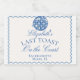 Elegantes "Last Toast on the Coast" Bachelorette Wochenenddesign. Mit handgezeichnet nautischen Bildern am Ozean und sanften Küstentönen in staubblauer französischer Farbe, mit eleganten Retro-Clubstreifen, die sich perfekt für ein schicke Strandwochenende oder ein kluges und elegantes Fest an der Küste eignen.