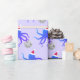 Fantastische Weihnachtsverpackung mit einem Muster von lächelnden, lila, Oktopus-Illustrationen, die Weihnachtsmannmützen tragen und Diskobälle auf einem leichten lila Hintergrund halten. Diskothek Ball Octopus Weihnachtsmannmütze Weihnachtswrapping Paper Holidadesign | ©Melissa Patton - Künstler/Illustrator
