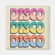 Farbenfrohe Grunge Retrostil "Disco Disco Disco Disco" Textgestaltung mit gestreiften Buchstaben Dekoration