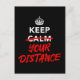 Ein sozialer distanzierender Slogan, der eine lustige Drehung über "Keep Calm and Carry On" ... Behalt Deine Distanz ist eine nicht so subtile Erinnerung, um jeden Safe behalten.