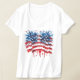 Embrace your faith and your love for the country with this beautiful Women's V-Neck T-Shirt with a vibrant, artistic distressed American flag in a modern splatter style at the front