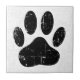 Cartoon dog pawprint in black. Custom square ceramic tile with grunge, distressed effect. Unique gift idea.