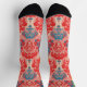 A richly layered damask pattern featuring ornate floral motifs in red, blue, and light blue, set against a sun-washed background of cream, yellow, and blush pink. The symmetrical design evokes vintage wallpaper and ceremonial textiles, while the distressed texture adds depth, warmth, and a sense of faded grandeur. This piece blends mid-century elegance with bohemian nostalgia emotional resonance and timeless charm.