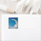 Daisy Crescent Moon Original Malerei. Akrylfarben. Dunkelblauer Nachthimmel mit Halbmond in weißen Gängen und Silberfräse.