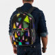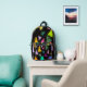 Sie werden Liebe mit diesem All-Over-Print-Rucksack, mit den verschiedenen Größen und Farben von Dreiecken, erstellt mit rauen Pinselstrichen, auf einem schwarzen Hintergrund. Stilvoll und lustig!