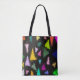 Die Liebe dieses All-Over Print Tote Bags, mit den verschiedenen Größen und Farben von Dreiecken, erstellt mit rauen Pinselstrichen, auf schwarzem Hintergrund. Stilvoll und lustig!