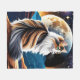 Schöne Fluffy Dilute Calico Katzenberge Sternenhimmel und Vollmond AI Art von minx267