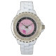 Uhr, Klassische Damenuhr mit schwarzen Lederarmband