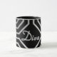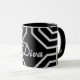 Silber funkelnder Diva Text auf schwarzem Hintergrund mit silberfarbenem Muster.