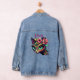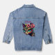 Diva Whimsical Big-Eye Cat Kitty Floral Jeansjacke