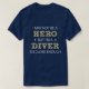 Ich bin vielleicht kein Held, aber ich bin ein Taucher, der so nah genug humorvolle Wortkunst in Sans-Serif und doodle Cross-Luch-Schriftart zeigt, in weiß und goldgelb mit zwei bedrückten Akzent Sterne.