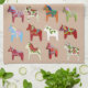 Dieses Diverse Dalas Dish Handtuch Design ist aus 22 hölzernen dala Pferden gemacht, entworfen, geschnitzt und gemalt von Julia Morrill